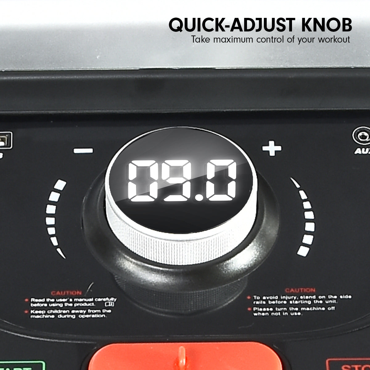 With dedicated buttons for speed, incline, and speaker volume, this treadmill gives you full control over your cardio. You can also turn the central dial to adjust the speed in an instant.