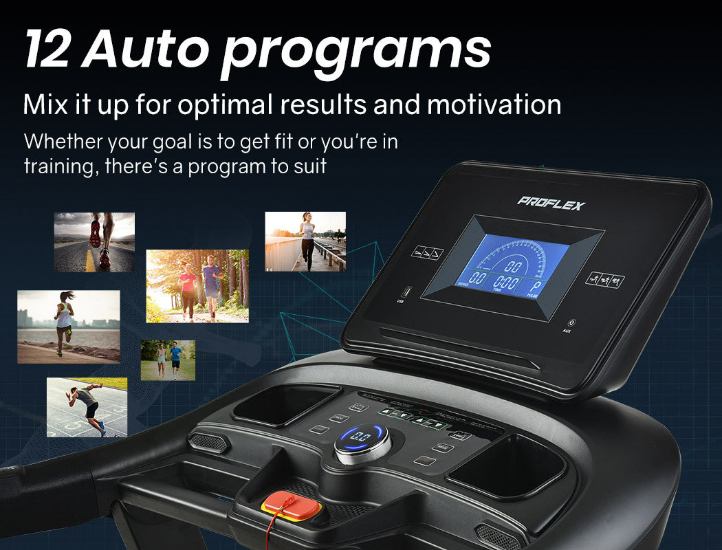 PROFLEX Electric Treadmill Auto Incline Foldable Exercise Run Machine Fitness Gym 4HP 480mm Belt